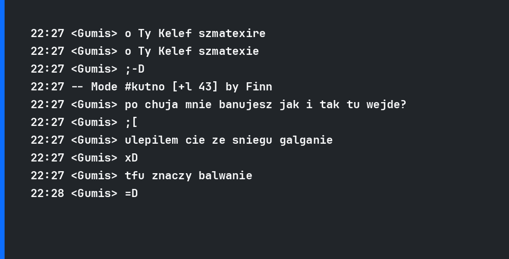 22:27 <Gumis> po chuja mnie banujesz jak i tak tu wejde?